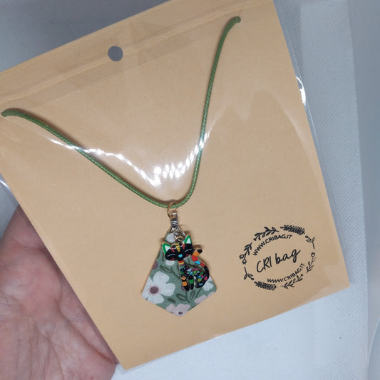 Queste collane sono dei pezzi unici che catturano lo spirito felino con eleganza. Il ciondolo presenta una struttura in metallo rivestita in tessuto abbinato a una simpatica figura di gatto che aggiunge personalità al tuo look. Perfetta per chi ama gli accessori distintivi e desidera indossare un gioiello che racconta una storia. Ogni pezzo è unico, rendendolo un'aggiunta speciale alla tua collezione di gioielli.